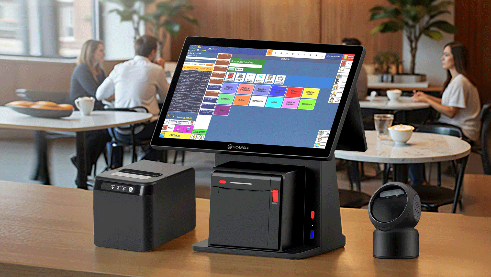 scangle d2 kassensystemは、80mmサーマルプリンタを内蔵したタッチpos端末をタッチします